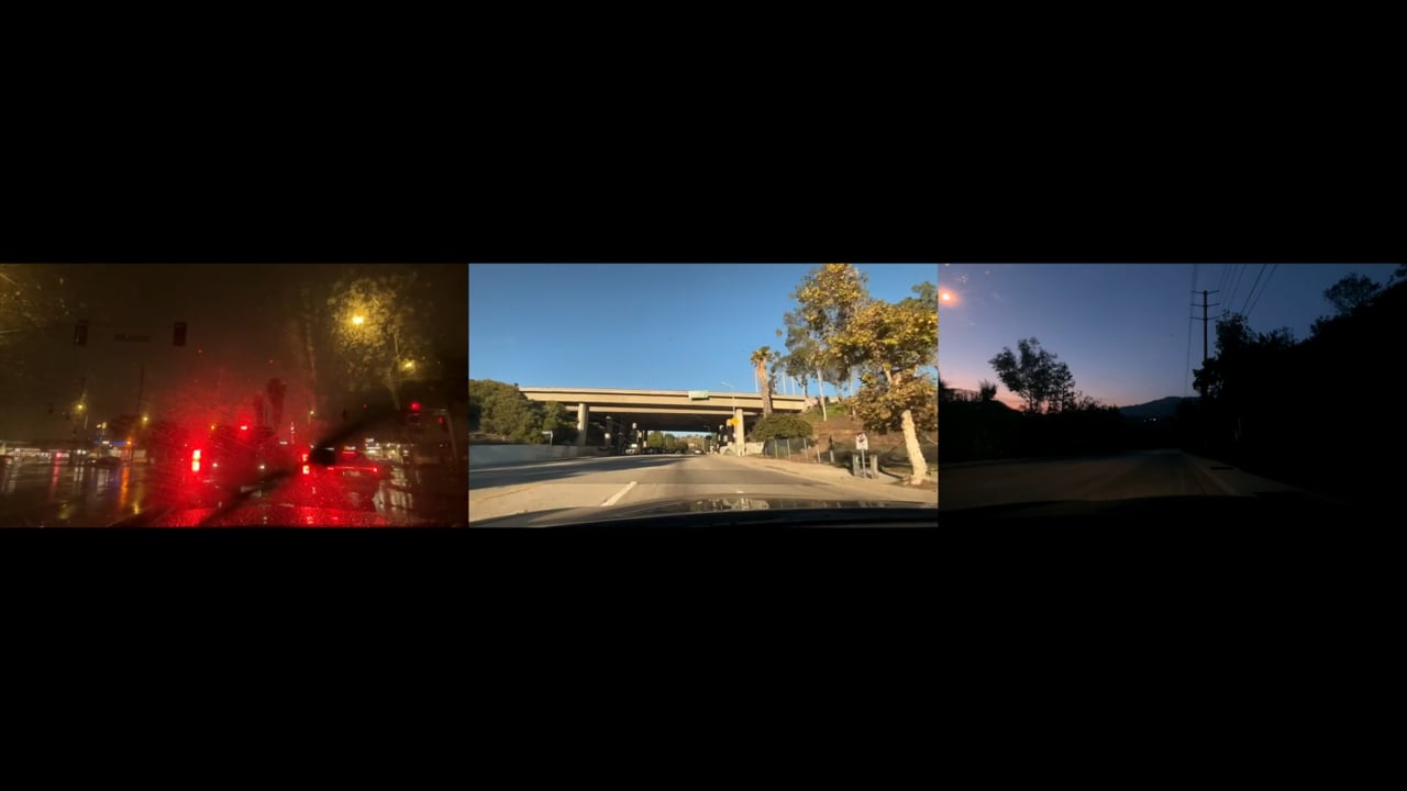 Figueroa Street, 2025, 59 min (EXCERPT) excerpt length: 2:41 excerpt start time: 21:59 3-channel HD video | sound | color | RT: 59:36 ROLE: Filmmaker (Camera / Edit / Sound) Part of a greater archive of single-take drives of Los Angeles corridors entitled CONSTELLATIONS OF THE ANGELS, this multi-channel experimental documentary comprises three drives — S. Figueroa from Wilmington to Chinatown, N. Figueroa from Cypress Park to Eagle Rock, and Figueroa Street in Glendale to La Cañada Flintrid